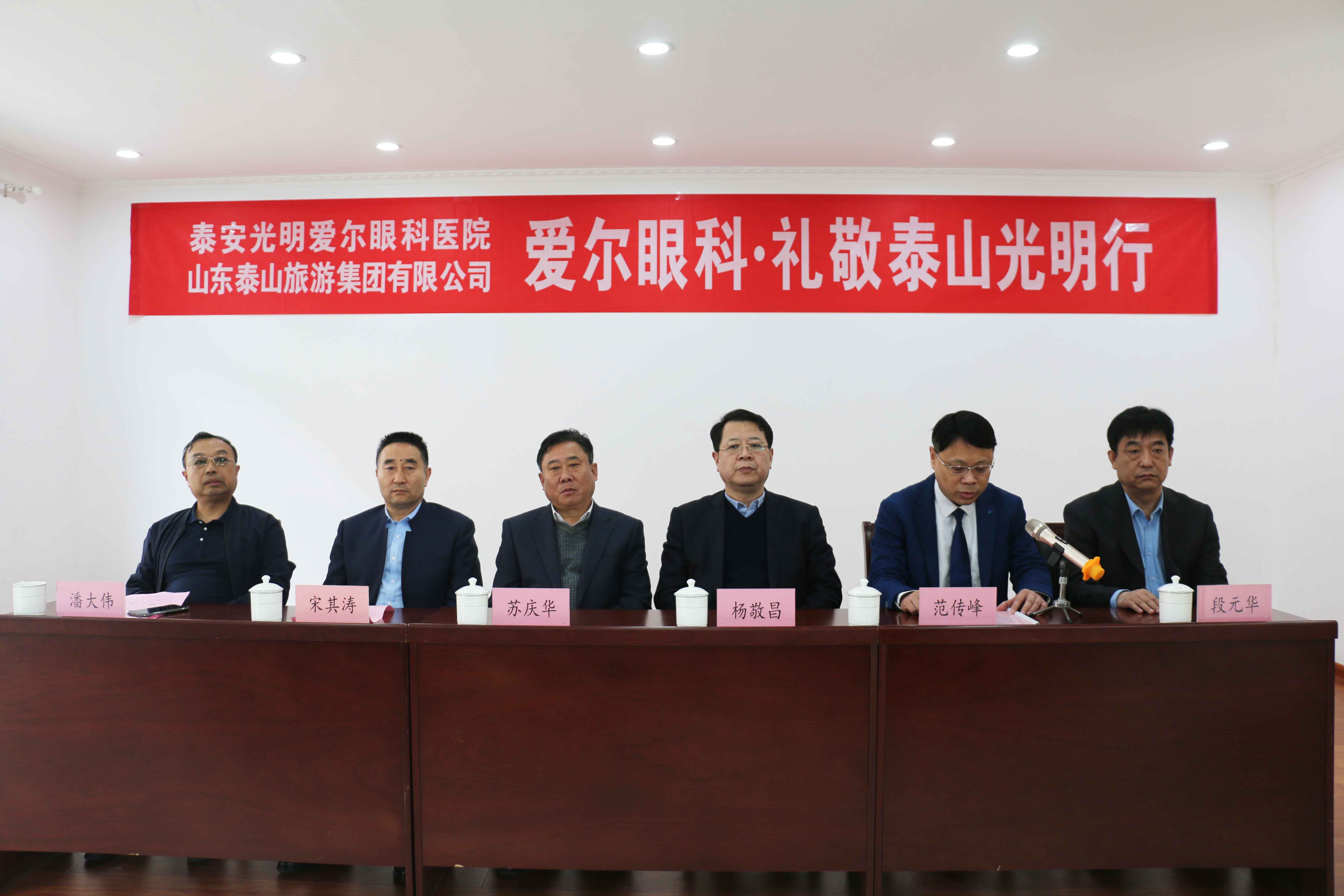 ? ? ? ? 3月26日上午,由山東泰山旅游集團(tuán)有限公司與泰安光明愛(ài)爾眼科醫(yī)院聯(lián)合開(kāi)展的“愛(ài)爾眼科?禮敬泰山光明行”活動(dòng)正式啟動(dòng)。旅游集團(tuán)黨委書(shū)記、董事長(zhǎng)蘇慶華,旅游集團(tuán)黨委委員、副總經(jīng)理潘大偉,景區(qū)客運(yùn)公司董事長(zhǎng)、總經(jīng)理宋其濤,泰安光明愛(ài)爾眼科醫(yī)院CEO楊敬昌,院長(zhǎng)范傳峰,行政副院長(zhǎng)段元華以及泰山旅游集團(tuán)近70名職工參加啟動(dòng)儀式。